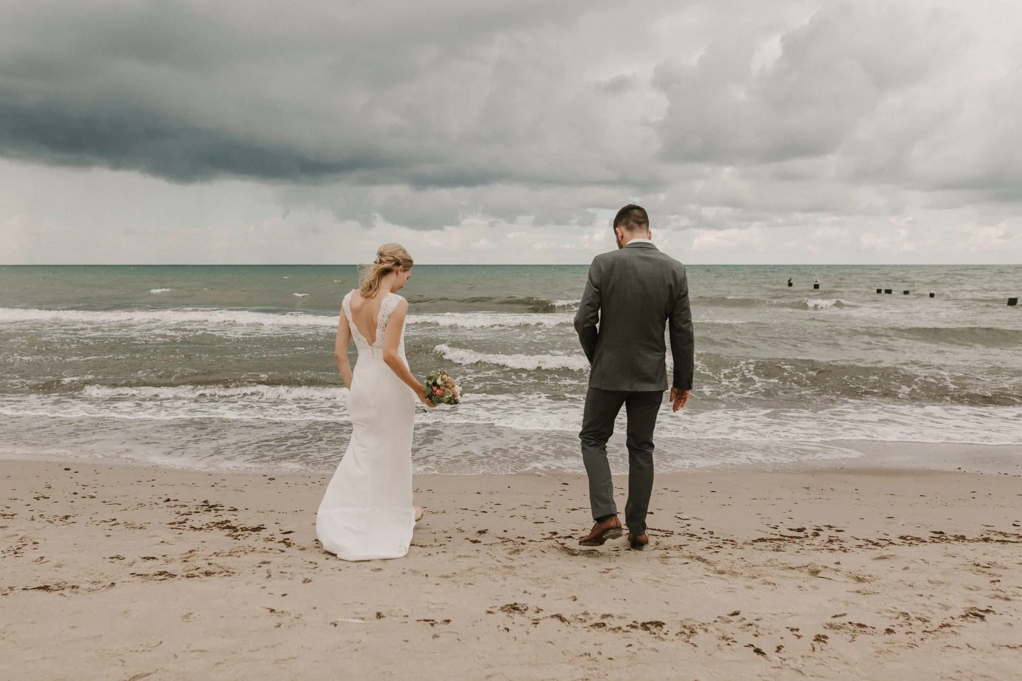Nach der Trauung im Standesamt Rostock sind wir zusammen zum Strand gefahren, um viele schöne Brautpaarbilder der beiden festzuhalten. Mit nichts weiter als die Trauzeugen und viel Sekt dabei, hatten wir den Strand ganz für uns alleine. Für mich als Hochzeitsfotografin sind diese kleinen und intimen Hochzeiten immer die schönsten. Es ist viel Zeit und Ruhe für das Brautpaarshooting und somit für einmalige und besondere Hochzeitsfotos. Denn auch bei einer Hochzeit im ganz kleinen Kreis, sind zeitlose Fotos eine wunderbare Erinnerungen. Denn sie sind das einzige, das von diesem einmaligen Tag bleibt.